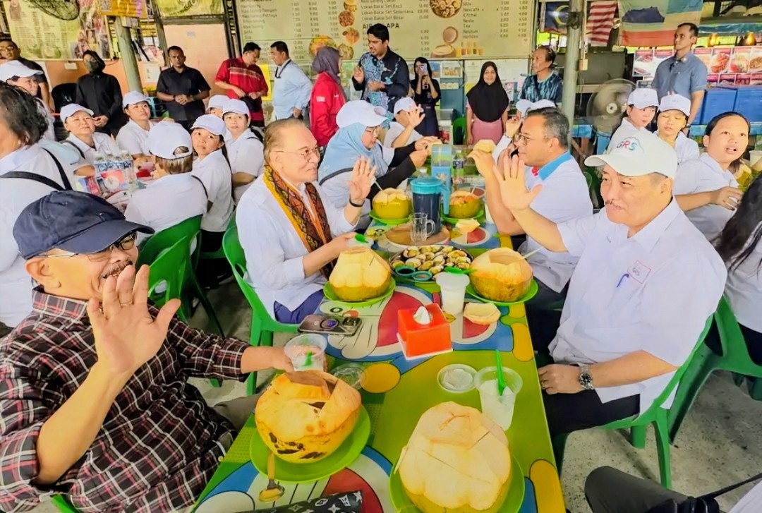 KOTA KINABALU : – Bumi Karambunai beruntung, Perdana Menteri Datuk Seri Anwar Ibrahim dan Ketua Mentiri Datuk Seri Panglima Hajiji Haji Noor singgah di Gerai Kelapa Bakar Salut.